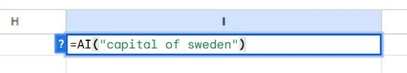 Skriver du funksjonen =AI(capital of Sweden) vil det bli: